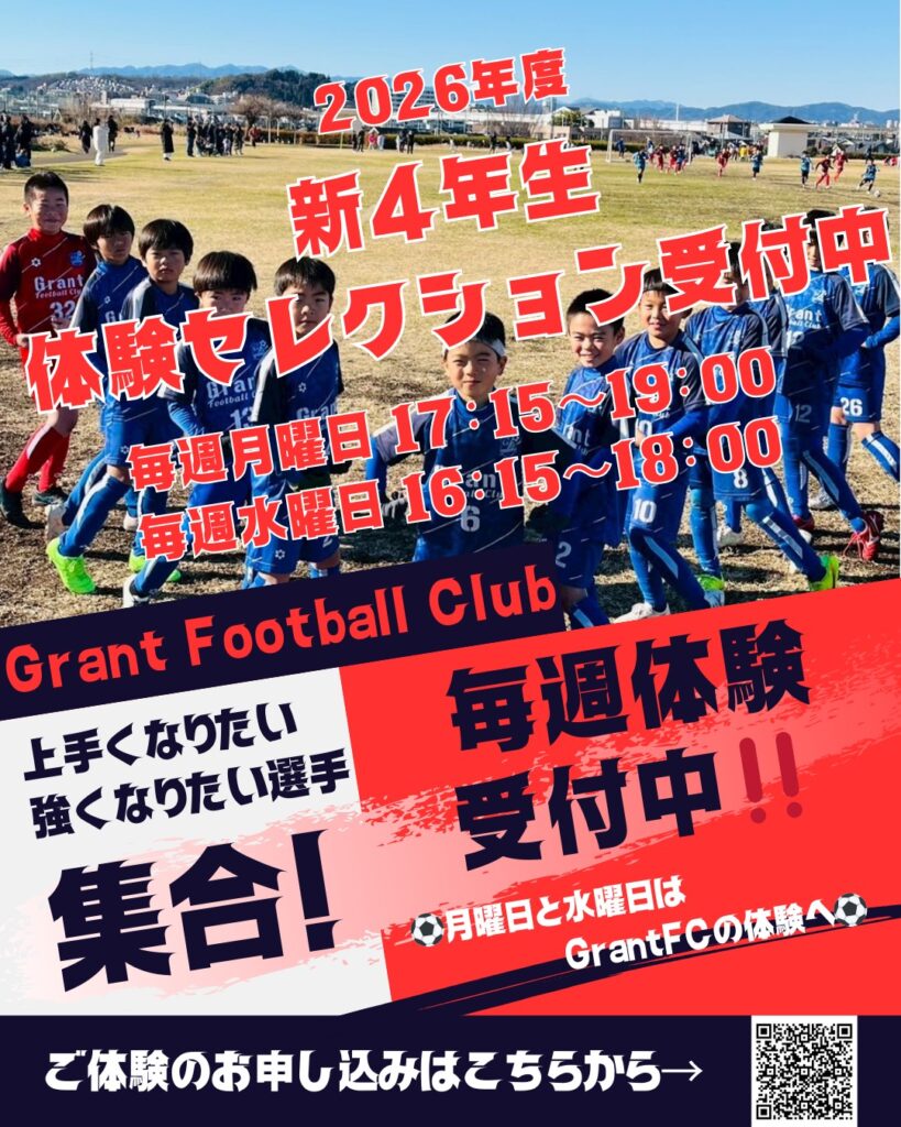 2026年度 GrantFC 新1年生 無料体験練習会開催